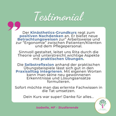 - An der Kinaesthetics - Fachtagung 20.05.16 durfte im Workshop "palliative Pflege" mitwirken